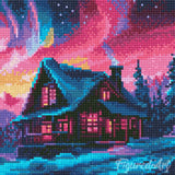 Model: Mini Diamond Painting 25x25cm - House under Aurora Sky
