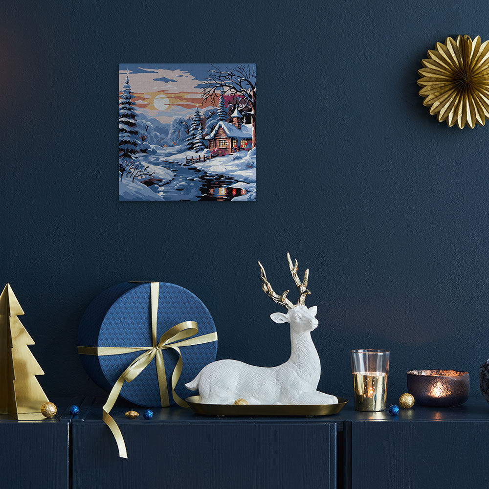Mini Paint by numbers Lovely Winter Cottage 20x20cm already framed