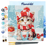 Model: Mini Paint by numbers Cute cat in Red Scarf 20x20cm already framed